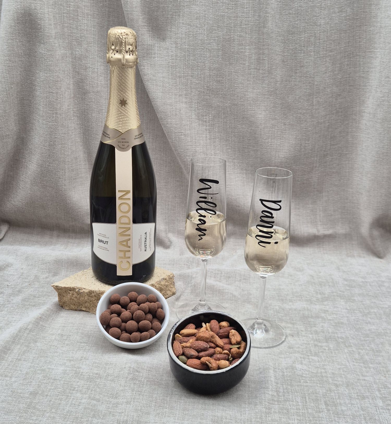 Our Bubbly for Two hamper is the perfect way to celebrate life’s special moments together. Featuring a smooth bottle of Jacob’s Creek Pinot Noir, two personalised wine glasses, and a delicious selection of luxury nuts and chocolate-coated coffee beans, this beautifully curated hamper is made for sharing. Whether it’s an anniversary, engagement, thank-you, congratulations or a cosy night in, it’s a thoughtful and romantic gift that brings a little indulgence and a lot of love to any occasion.