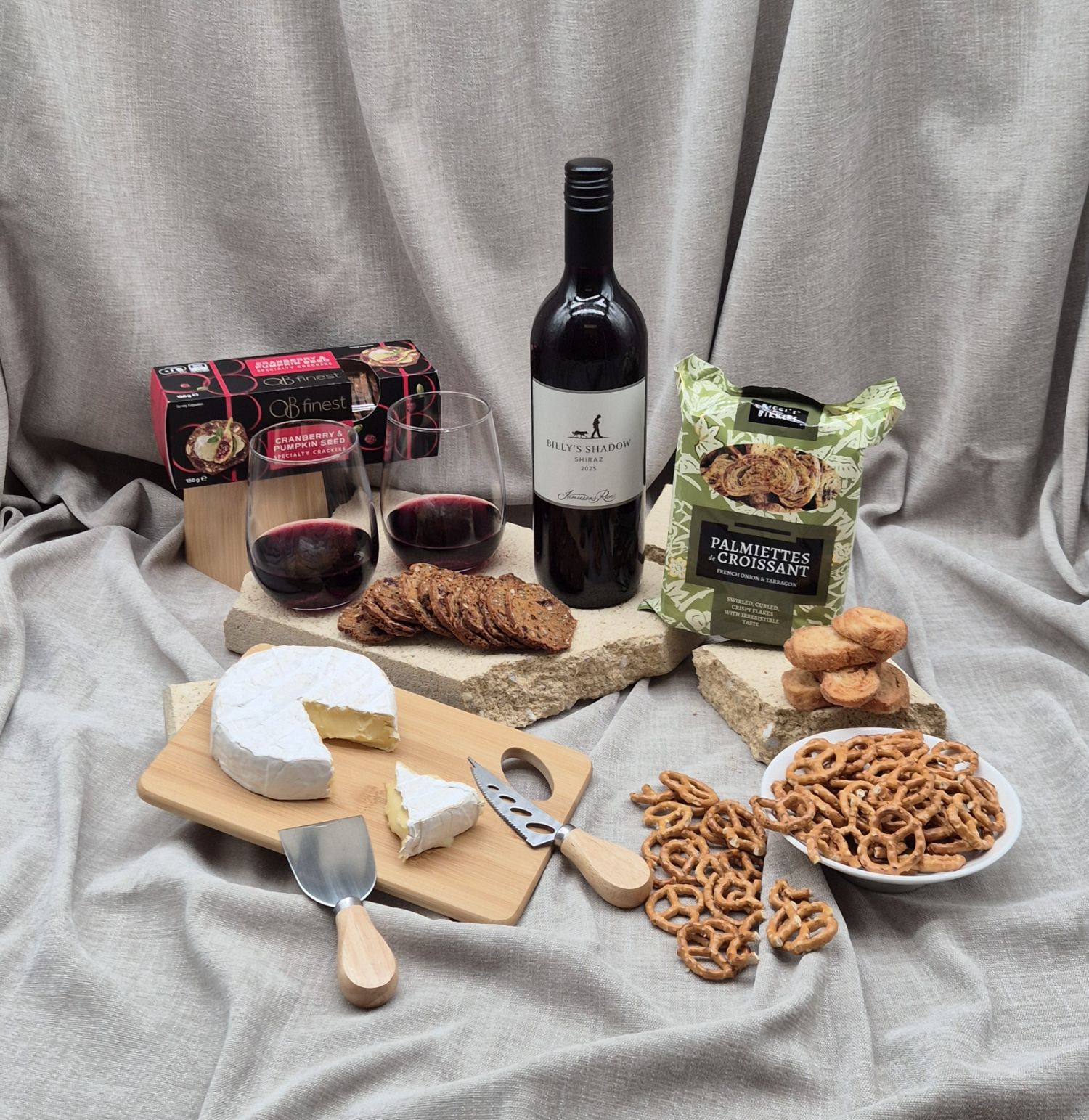 The Evening Indulgence Hamper is the perfect way to celebrate the first night in a new home. Thoughtfully curated with a smooth bottle of Shiraz, elegant personalised wine glasses, artisan crackers, crisp pastries, savoury snacks, and stylish serving accessories, it creates an instant moment of comfort and indulgence after a busy moving day. Ideal for housewarmings, congratulations, or welcome-home gifts, this hamper helps turn an empty house into a warm, welcoming home from the very first evening.