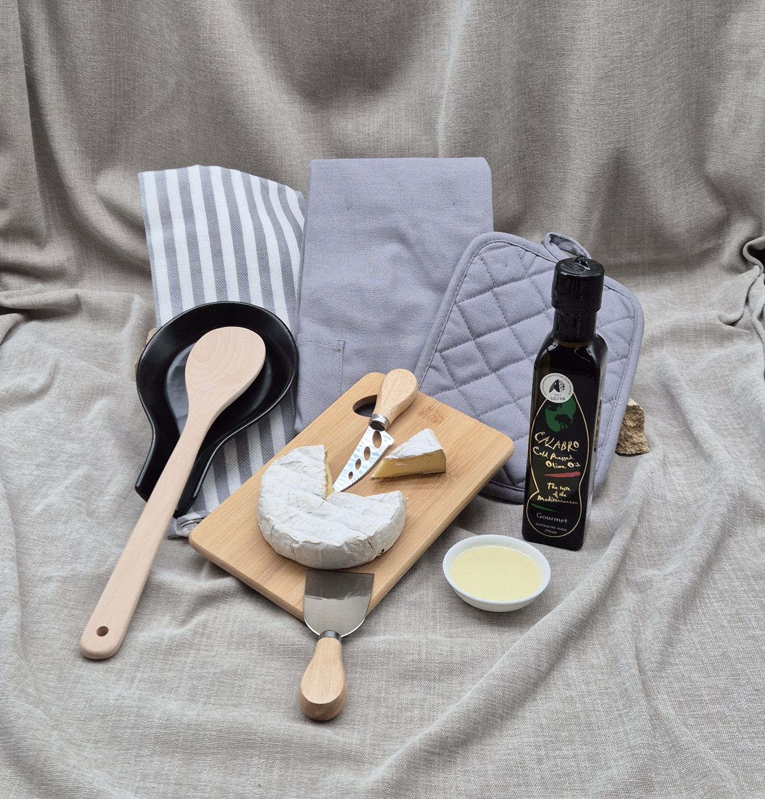 The Savour & Settle Hamper is a beautifully considered gift designed for relaxed entertaining and new beginnings. Featuring artisan kitchen essentials, premium olive oil, elegant serving pieces and gourmet accompaniments, it invites moments of sharing and enjoyment at home. Perfect for settlements, housewarmings or thoughtful celebrations, this hamper blends everyday practicality with a touch of indulgence—encouraging its recipient to slow down, savour the moment and feel instantly at home.